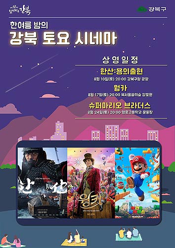 한여름 밤, 지친 일상의 피로를 씻고 힐링할 수 있는 무료 영화관 '한여름 밤의 강북 토요시네마'가 서울 강북구(구청장 이순희)에서 막을 연다.