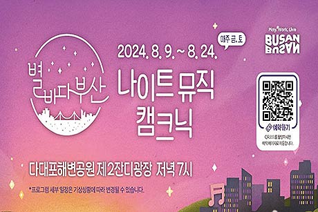 부산시(시장 박형준)는 한국관광공사(사장직무대행 서영충), 부산관광공사(사장 이정실)와 함께 작년에 이어 올해도 다대포 해변공원에서 「2024 별바다부산 나이트 뮤직 캠크닉」을 개최한다고 밝혔다.