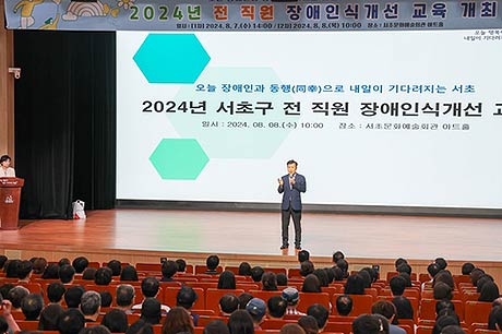 서울 서초구(구청장 전성수)는 오는 8월 7일과 8일 이틀 동안 서초문화예술회관에서 서초구청 전 직원을 대상으로 장애인식개선 교육을 실시했다.