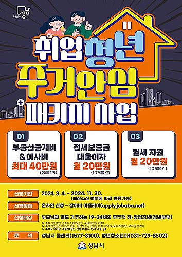 성남시는 '취업청년 주거안심 패키지 3종 사업'을 추진 중인 가운데 그 일부인 전세보증금 대출이자 지원 대상을 확대했다고 19일 밝혔다.