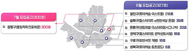 시는 지난달 ‘미리 내 집’ 제1호 올림픽파크포레온(강동구 둔촌동) 300호 입주자를 모집, 최대 213대 1의 경쟁률을 기록한 데 이어 6개 단지, 327호 추가 공급에 들어간다고 밝혔다. 8.30.(금) 입주자 모집 공고하고 9.11.(수)~12.(목) 이틀간 신청 예정이다.