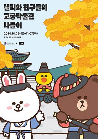 국가유산청 국립고궁박물관(관장 정용재)은 주식회사 IPX(구 라인프렌즈, 대표이사 김성훈)와 10월 25일부터 11월 7일까지 박물관 야외 은행나무 일원(서울 종로구)에서 가을 문화행사 「샐리와 친구들의 고궁박물관 나들이」 행사를 개최한다.