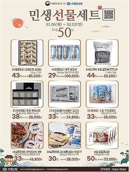 또한, 설 성수품을 다채롭게 구성하여 저렴하게 구입할 수 있는 ‘설 민생 선물세트’도 마련하였다. 수협 온·오프라인 매장 및 모바일 플랫폼(카카오톡 선물하기)*에서 구매 가능하며, 정상가의 최대 절반 수준까지 할인하여 판매할 예정이다.
