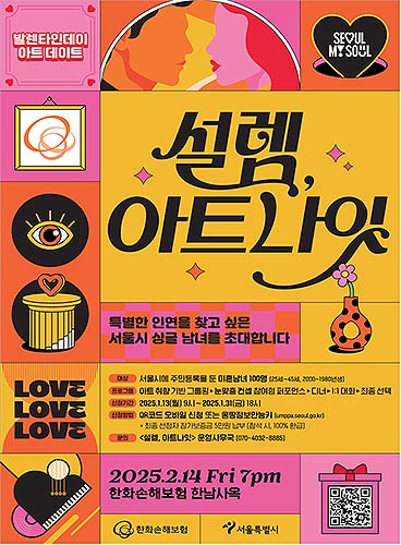 서울시는 한화손해보험(주)과 발렌타인데이인 2월 14일(금) 저녁 7시 두 번째 미혼남녀 만남행사인 ‘설렘, 아트나잇’을 개최한다고 밝혔다.