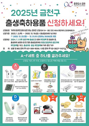 유성훈 금천구청장은 "작년 만족도 조사에서 나온 구민들의 의견을 반영해 출생축하용품 지원 품목을 다양화했다"며 "아이를 낳고 키우기 좋은 금천을 만들기 위해 앞으로도 더욱 노력하겠다"라고 전했다.