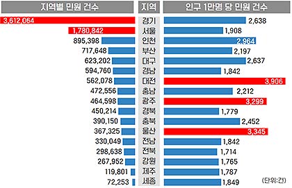 교육청 중에서는 ‘아산 탕정지역 초교 신설 요구’ 민원 등 총 4,653건이 발생한 충남교육청이 전년 대비 89.3% 증가했다.