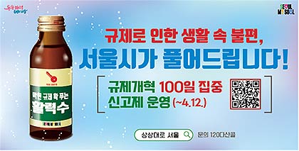 서울시는 지난 1월 3일부터 운영 중인 규제철폐 ‘100일 집중 신고제’(1.3.~4.12.)와 관련하여, 신고를 원하는 시민 누구나, 어디서든 간편하게 신고가 가능한 ‘규제철폐 온라인 시민제안 접수 창구’를 1월 24일부터 4월 12일까지 운영한다고 밝힌 바 있다.
