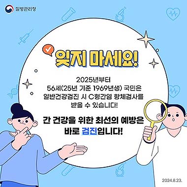 전라남도는 올해부터 56세에 해당하는 도민은 국가건강검진을 받을 때 C형간염 항체 검사를 받을 수 있다고 밝혔다.