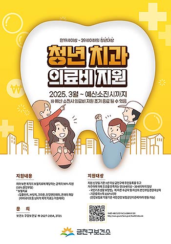 이에, 구는 전국 최초로 '서울특별시 금천구 청년 치과 의료비 지원에 관한 조례안'을 제정하고, 보건복지부 사회보장제도 신설 협의를 거쳐 사업을 마련했다. 이를 통해 치과 치료에 경제적 부담을 겪고 있는 취약계층 청년들에게 실질적인 도움을 제공하고, 건강한 구강 관리를 지원할 계획이다.