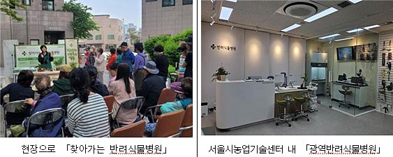 한편, 서울시는 반려식물에 대한 관심과 수요가 증가함에 따라, 시민들이 언제든 방문할 수 있는 ‘광역반려식물병원’도 운영하고 있다. 광역반려식물병원은 평일 오전 10시부터 오후 5시까지 운영되며, 반려식물의 진단·처방·치료 및 상담 서비스를 제공한다. 당일 치료가 어려운 경우에는 입원 치료도 가능하다. 이용을 원하는 시민은 서울시 공공서비스 예약 시스템(http://yeyak.seoul.go.kr)에서 사전 예약하면 된다.