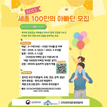 '세종 100인의 아빠단'은 아빠의 적극적인 육아 참여로 일·가정 양립을 위한 사회 분위기를 확산하기 위해 운영된다.