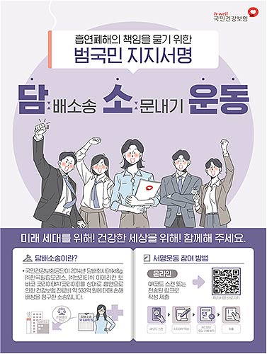 국민건강보험공단은 흡연으로 인한 건강보험 재정 손실을 보전하고, 흡연 폐해를 은폐한 담배회사의 책임을 묻기 위한 ‘범국민 지지서명 운동’을 3월 24일부터 5월 31일까지 진행하며, 전 국민의 약 2%인 100만 명을 목표로 하고 있다.