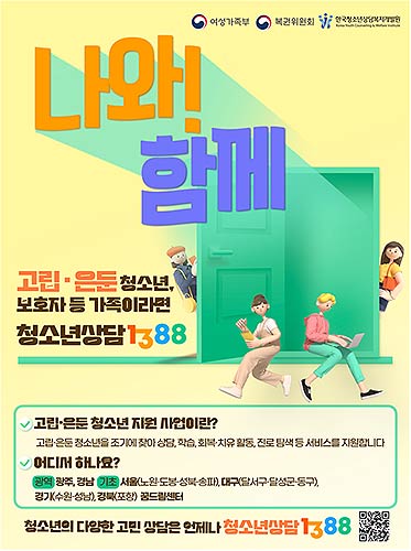 4월 1일부터 전국 편의점 매장 내 양방향 계산기(POS) 화면을 통해 고립‧은둔 청소년 지원 사업과 상담 번호(‘청소년상담1388’)를 안내하는 한편, 오는 18일까지 누리 소통망(SNS)에서「청소년 고립·은둔 예방 캠페인」 국민 참여 행사(이벤트)*도 진행된다.