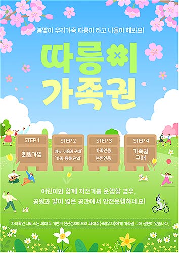 4월 23일부터 이용 가능한 ‘가족권’은 자녀가 따릉이를 이용할 수 있도록 부모가 구입하는 ‘따릉이 이용권’으로, ‘가족권’을 이용하면 만 13세 미만의 어린이도 보호자의 감독하에 따릉이를 이용할 수 있게 된다.