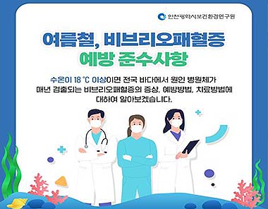 인천광역시 보건환경연구원은 다년간의 비브리오패혈균 감시자료와 예년 추세를 분석한 결과, 인천 연안에서 비브리오패혈증의 원인 병원체인 비브리오패혈균이 곧 검출될 것으로 보고 시민들에게 주의를 당부한다고 밝혔다.