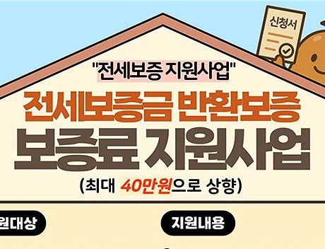 ‘전세보증금 반환보증 보증료 지원사업’은 전세보증금 미반환에 따른 피해를 예방하기 위해 전세보증보험 가입자가 보증기관(HUG·HF·SGI)에 낸 보증료를 전액 또는 일부를 지원하는 사업이다.