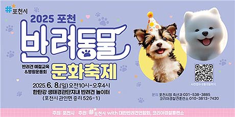 포천시는 오는 6월 8일 한탄강 생태경관단지 내 반려견 놀이터에서 '2025 포천 반려동물 문화축제'를 개최한다.