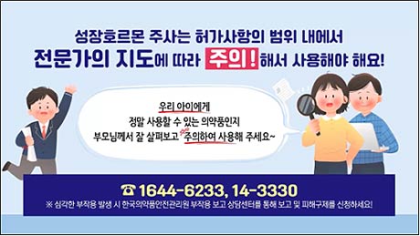 식품의약품안전처는 사회적 관심 품목인 성장호르몬 제제의 올바른 사용을 위해 의약품 안전 정보 등을 지속적으로 안내하고 과대광고 행위도 단속할 예정이라고 밝혔다.