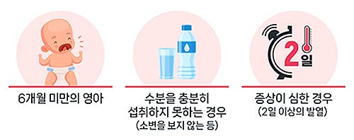 - 바로 병의원에서 진료 받고 등원 및 외출 자제 하기(발병후 1주일)