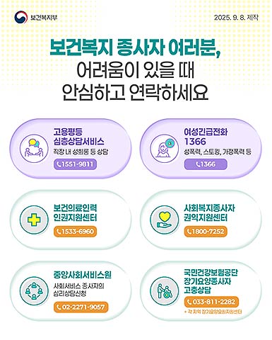 이에 보건복지부는 직장 내 성희롱 상담을 제공하는 고용노동부 고용평등심층상담서비스, 여성폭력 상담을 제공하던 여성가족부 여성긴급전화1366과 협력을 강화하여, 상담사들이 보건복지 분야의 특성을 잘 이해하고 좀 더 수월하게 보건복지 종사자 성희롱·성폭력 상담을 할 수 있도록 2025년 9월부터 보건복지부가 제공하는 콘텐츠를 상담사 교육에 활용할 수 있도록 부처 간 협업하였다고 밝혔다.