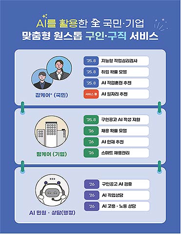 ’27년까지는 구직자, 구인기업, 행정직원이 모두 편리하게 이용할 수 있는 AI 직업상담과 AI 고용·노동 상담 서비스를 완료한다는 계획이다.