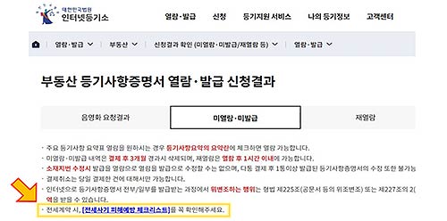 PC 이용자의 경우 두 방법으로 모두 체크리스트를 내려받을 수 있으며, 모바일 이용자는 등기사항증명서 열람‧발급 신청결과 페이지 내 링크를 통해 받을 수 있다.