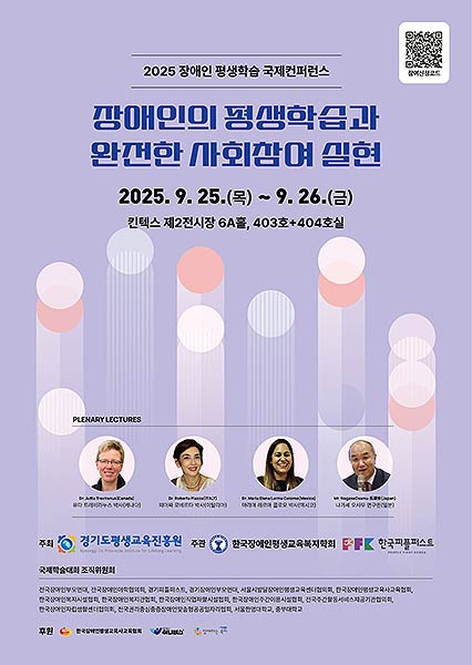 • 경기도와 경기도평생교육진흥원이 26일 고양 킨텍스 제2전시장 6A홀에서 ‘2025 장애인 평생교육 국제 학술대회’를 개최한다. 장애인 평생학습권 보장을 위해 국내를 넘어 국제적 차원의 논의장을 마련한 것은 이번이 전국 최초이다.