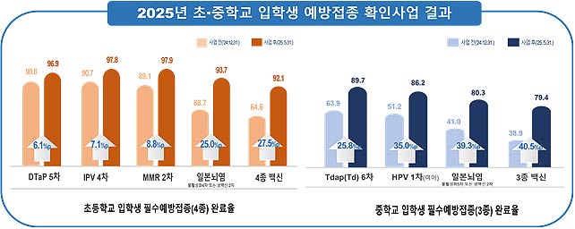 질병관리청과 교육부는 9월 24일(수)에 2025년 초·중학교 입학생 예방접종 확인사업 결과를 발표했다.
