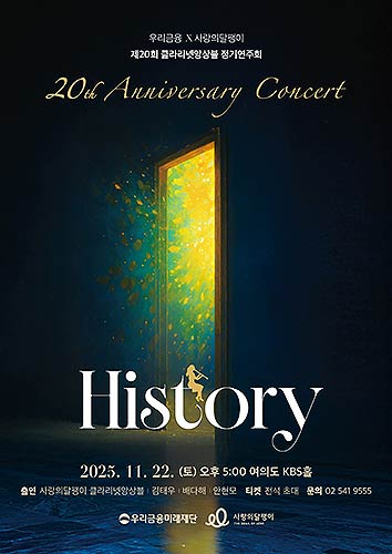 이번 연주회는 ‘히스토리(History)’를 주제로 지난 20여 년을 대표하는 곡들을 선별해 교향곡, 탱고, K Pop 등을 가미한 클래식의 하모니로 꾸며지며, 우리금융그룹 우리금융미래재단과 함께 공동으로 진행한다.
