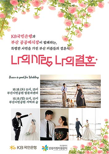 한편, 지난 주말(10월 18~19일) 시 공공예식장인 부산시민공원에서 「나의 사랑, 나의 결혼」 사업으로 특별한 결혼식이 열렸다. 경제적 부담이나, 특별한 사연으로 결혼식 지원을 신청한 예비부부 4쌍이 뜻깊은 예식을 치렀다. 이번 결혼식은 시 건강가정지원센터가 주관하고 케이비(KB)국민은행이 사회공헌사업으로 후원했다.