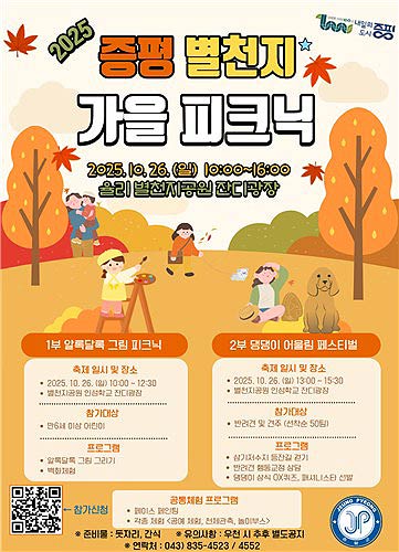 충북 증평군이 오는 26일 증평읍 율리 별천지공원 잔디광장에서 온 가족과 반려견이 함께 즐기는 '증평 별천지 가을 피크닉'을 개최한다.