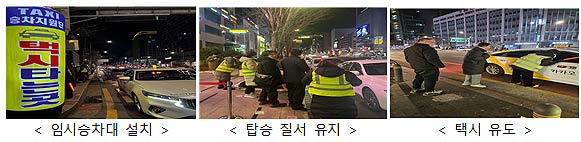 ※ 임시 택시승차대 운영지역(4개소) : 강남역 쉐이크쉑 앞, CGV 앞/ 종로 젊음의 거리/ 홍대입구역 9번 출구