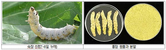 ‘홍잠’은 단백질 함량이 가능 높은 시기의 누에(익은누에, 숙잠)를 찌고 동결 건조해 만든 것이다.
