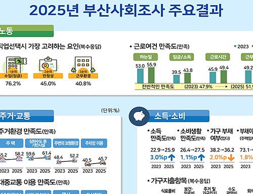 부산시는 부산시민의 삶의 질 향상을 위해 실시한 「2025 부산사회조사」 결과를 오늘(5일) 공표했다.