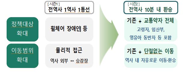 <2단계 전역사 10분내 환승 추진…시민불편 집중 13개역 대상, 교통약자 환승시간 58% 감축>