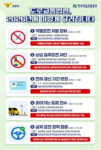 또한, 상습적인 음주운전 행위를 근절하고자, 최근 5년 내 2회 이상 적발된 위반자가 결격 기간 종료 후 면허를 재취득하면 차량에 ‘음주운전 방지장치’를 부착해야만 차량 운전이 가능한 조건부 면허 제도를 2026년 10월부터 본격적으로 시행한다.