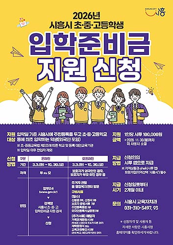 시흥시는 올해부터 관내 초중고 입학 자녀 가정에 입학준비금을 10만 원씩 지원한다. 이번 지원은 도서나 문구류 등을 새로 마련해야 하는 신입생 가정의 경제적 부담을 줄여주고, 교육 기본권을 강화하고자 추진됐다.