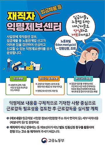 한편, 고용노동부는 2.2(월)부터 「재직자 익명제보센터」를 상시적으로 운영하고, 금년에는 이를 토대로 한 감독을 2배 이상 대폭 확대한다고 밝혔다. 여전히 체불, 장시간 근로 노동관계법 보호의 사각지대에 있음에도 재직 중인 상황에서는 신고 등 문제 제기가 쉽지 않다는 현실적 어려움을 감안한 조치이다.