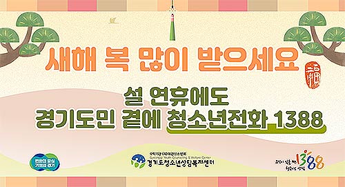 경기도는 설 당일을 포함해 14~18일 연휴 기간에도 위기 청소년 심리 상담 서비스 ‘청소년전화1388’을 24시간 운영한다.