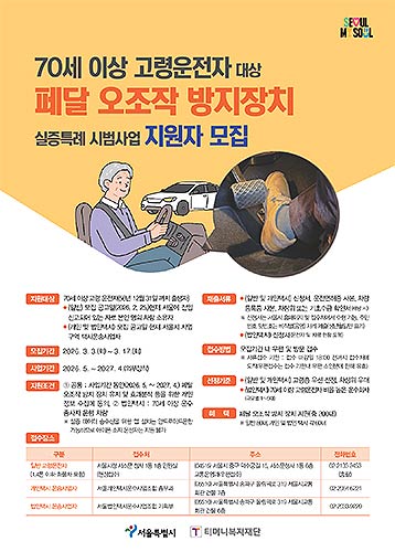 지원 대상은 서울시에 거주하는 70세 이상 고령운전자와 70세 이상 서울시 고령 택시운전자로 차량 200대에 순차적으로 무상 설치 예정이다. 신청 기간은 2026년 3월 3일(화)부터 3월 17일(화)까지이며, 기간 내에 우편 및 방문 접수를 하면 된다. 선정 결과는 서울시 누리집과 대상자에 개별 안내한다.