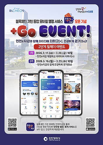 인천시는 서비스 개시를 기념해 3월 11일부터 3월 25일까지 시민이 앱 주요 기능을 직접 체험할 수 있는 “인천e지갑과 함께 아이디어 더하고( ), 건강하게 걷기(Go)!” 릴레이 이벤트를 진행한다.