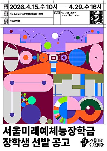 「서울미래예체능장학금」은 음악·미술·체육·무용 분야에서 재능을 보이는 저소득 가정 고교생 180명을 선발해 1인당 연 350만 원(2회 분할 지급)을 지원한다.