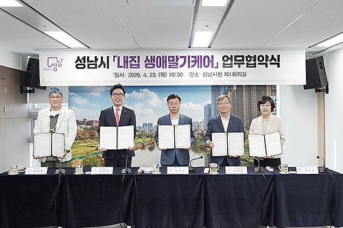 시는 4월 23일 오전 10시 30분 시청 4층 제1회의실에서 성남시의사회, 성남시의료원, 새한베스트의원, 집으로의원, 홈닥터의원과 '내집 생애말기케어 사업 추진을 위한 업무협약'을 체결했다.