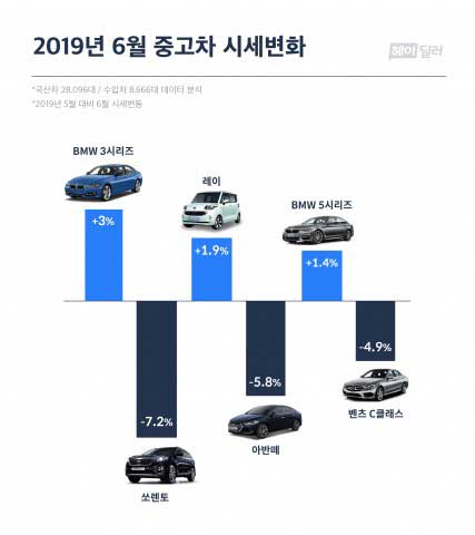 온라인 내차팔기 서비스 헤이딜러가 2019년 6월 중고차 시세분석 결과를 4일 공개했다.