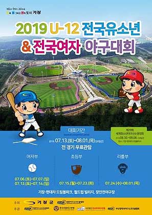 6일과 7일 여자야구대회 예선전을 시작으로 7월 13일부터 본격적으로 개최되는 '2019 U-12 전국유소년·전국여자야구대회'는 리틀부 5개 리그(달음산·시랑대·소학대·오랑대·불광산)와 초등부 4개 리그(임랑해변·일광해변·홍연폭포·장전구곡), 여자부 1개 리그로 리그별 우승팀을 가리는 방식으로 진행된다.