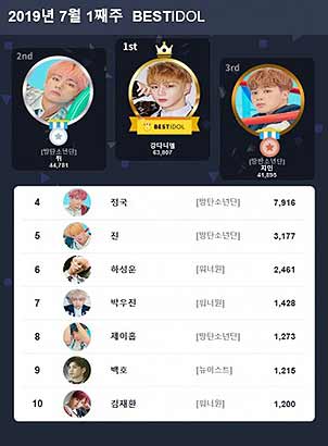 2019년 7월 1일부터 7일까지 진행된 7월 첫째 주 투표에서 강다니엘은 6만3807표를 득표하며 1위를 차지했다.