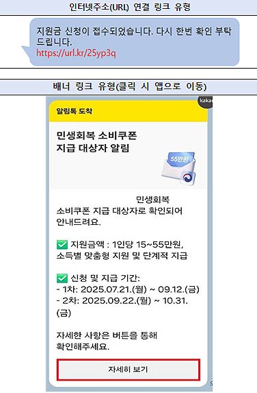 인터넷 주소 바로가기(URL 링크)가 포함된 고유가 피해지원금 문자와 알림은 100% 사기입니다